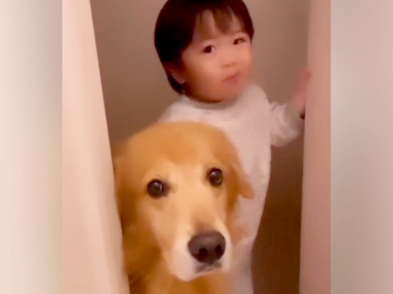 ゴールデンレトリバーのマックスくんと、飼い主さんの幼い子供の温かく平和な日常のひとコマが注目を集め、多くの視聴者を癒しているようです。