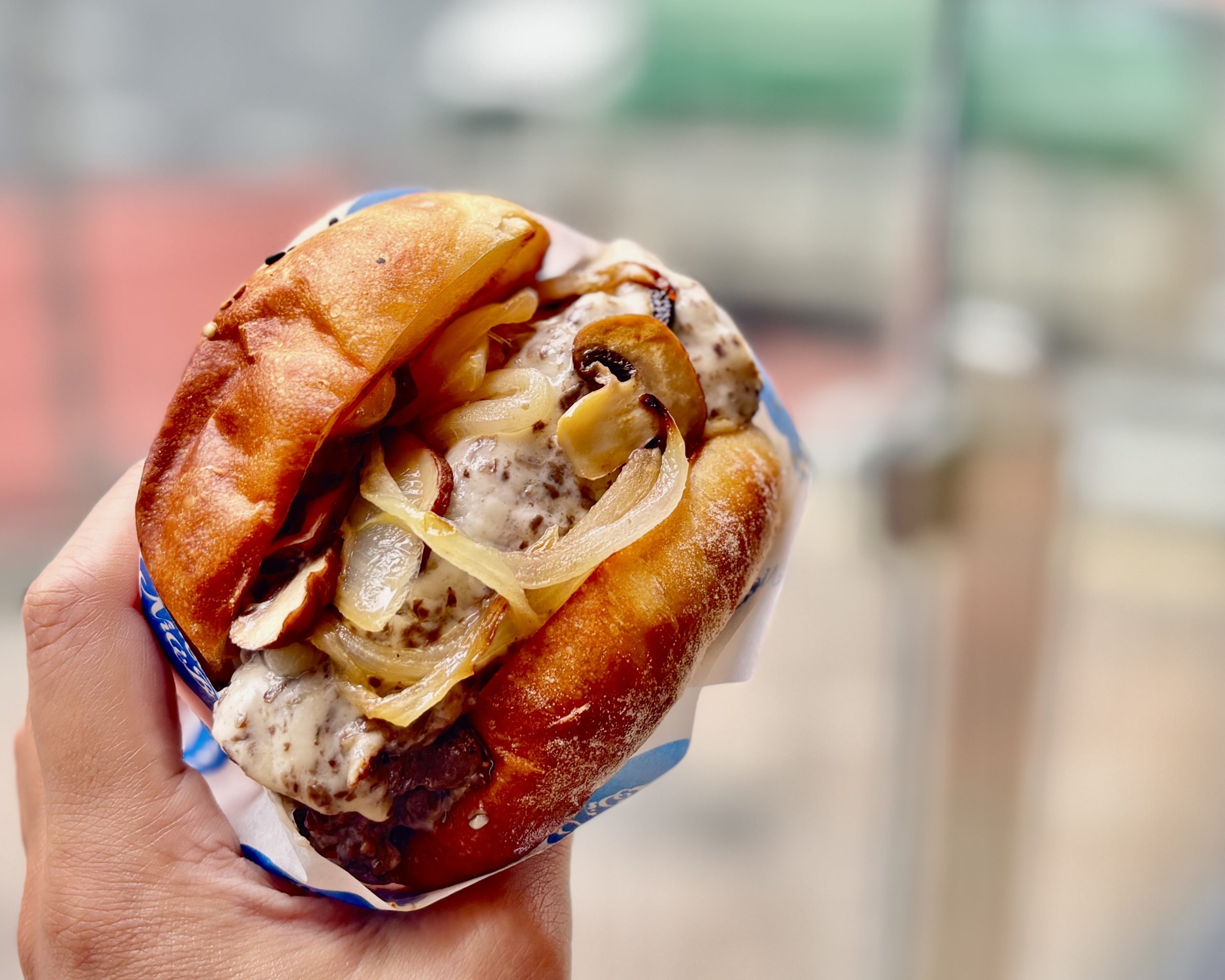 アンガス牛を使用したジューシーなパティにグリル玉ねぎとマッシュルーム、ベシャメルソースがサンド。スタッフの方も「イチオシです!」というのも納得のおいしさです。
