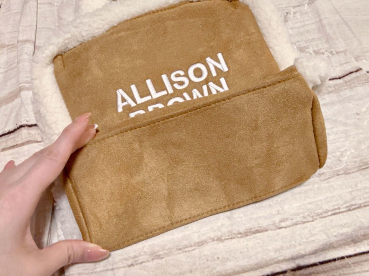『otona SWEET』冬号には、ALLISON BROWN(アリソンブラウン)のバッグ(ボアポシェット)が付録としてついてきます。