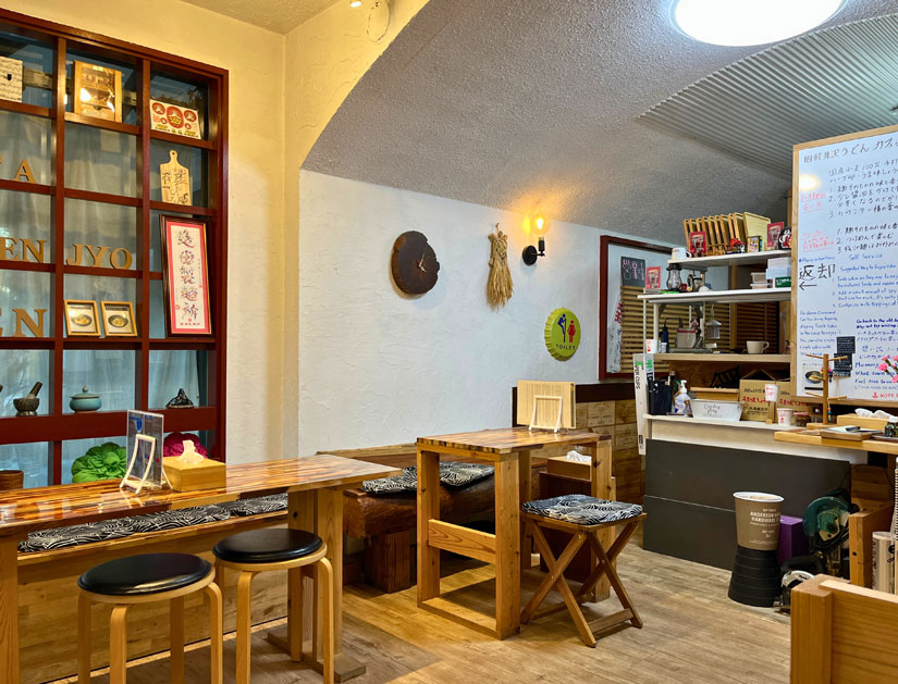 手がけるのは、うどん作りに情熱を注いできたオーナー・造田さん。これまでに培った技術と知識を応用し、固定概念にとらわれない自由なラーメン作りに挑戦。看板メニューの「かけラーメン」は、昆布出汁メインのスープに、国産小麦を使った自家製麺を組み合わせたシンプルな旨みが楽しめる一品。また、タイ出身の奥様と共作した「タイのガパオラーメン」やタイカレースープのラーメンも並びます。
