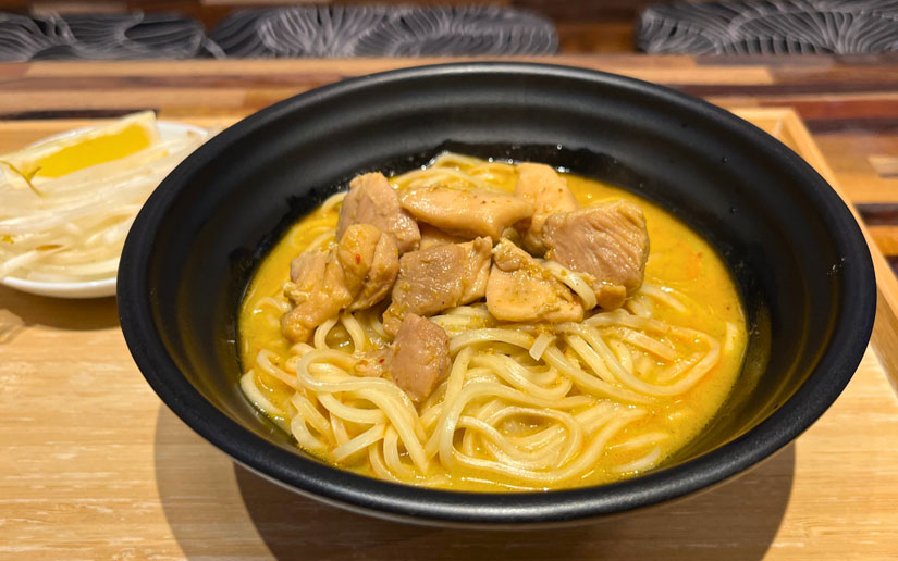 ココナッツミルクのコクと、あと引く辛さがクセになる「タイレッドカレーファイヤーラーメン」。濃厚なタイカレー仕立てのスープに、やわらかい鶏肉と麺がよく絡む満足感のある一杯。ピリ辛なので辛味が苦手な人にも食べやすいバランス。付け合わせのレモンを搾れば、本場の食べ方に早変わり。爽やかな酸味と柑橘の香りが加わり、スパイスの香りとカレーの旨みが一層引き立ちます。