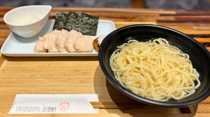 材料は国産小麦とかん水などシンプルですが、熟成のさせ方や寝かし方はうどんのやり方をアレンジ。一般的なラーメンとは異なる、うどんのようなもちもちとしたコシのある多加水麺が完成したそう。