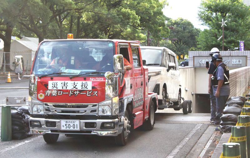 大雨による大規模な浸水があった三重県四日市市の地下駐車場くすの木パーキングで10月1日、多数のレッカー車を投入した被害車両の本格的な搬出作業が始まった。この日だけで90台余を地上に出すことができたが、3日程度をかけて集中的に搬出を進める考えだという。