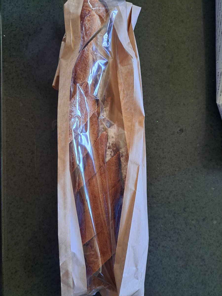 本当は全長50cmぐらいのパンが一本丸ごと入っています。