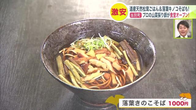 「青山のさんさい食堂」の看板メニューは、『落葉きのこそば 1,000円(税込)』。