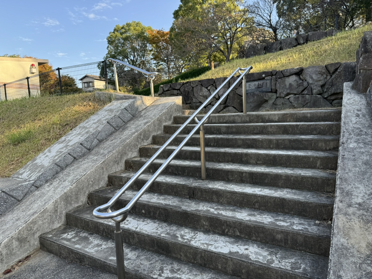 高低差がありますが、石段の横には手すりが設置されており、安心して上り下りができます。