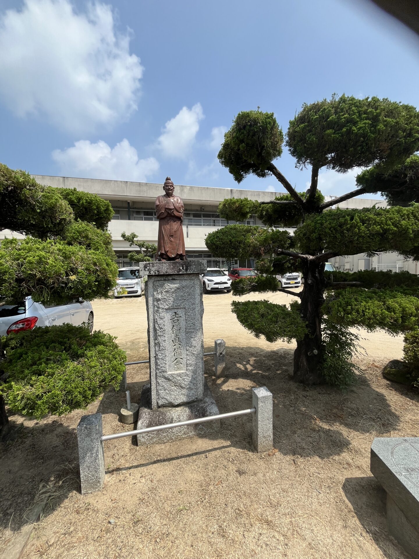 約1300年前に遣唐使で活躍した吉備真備(きびのまきび)の生誕の地として、学校の周りには「まきび公園」や「吉備真備駅」など吉備真備にちなんだ名所がいくつもあります。