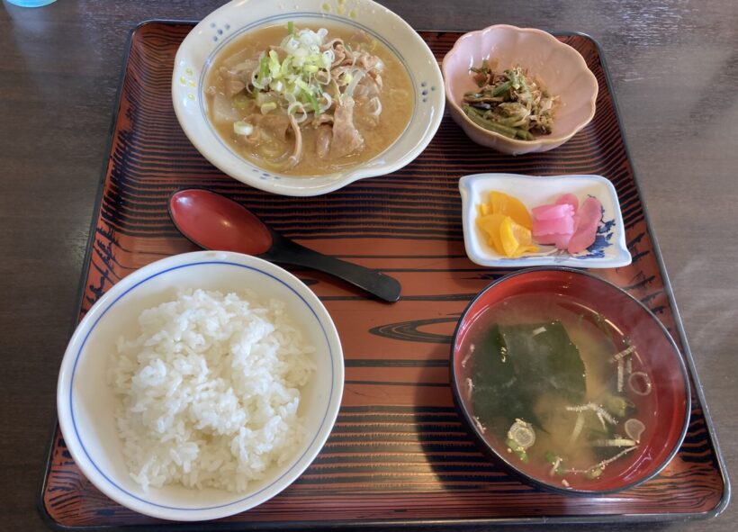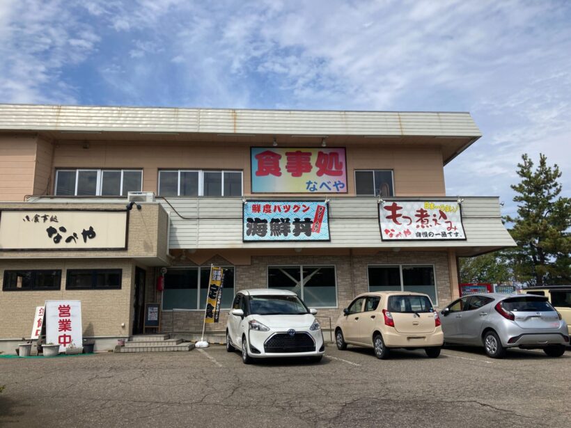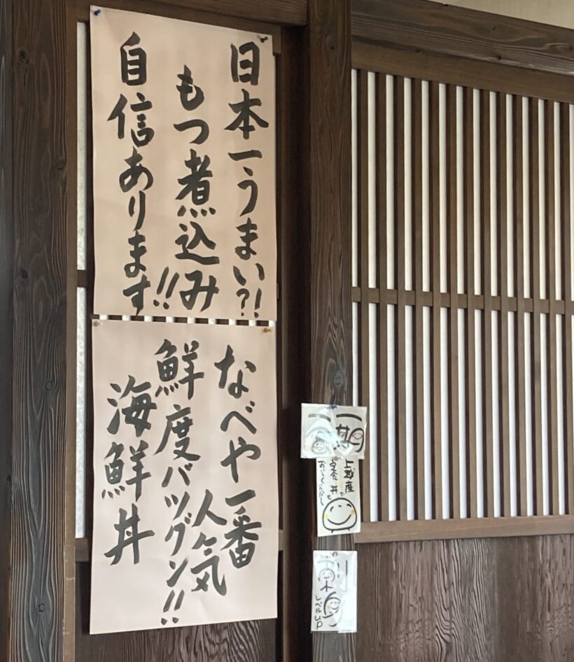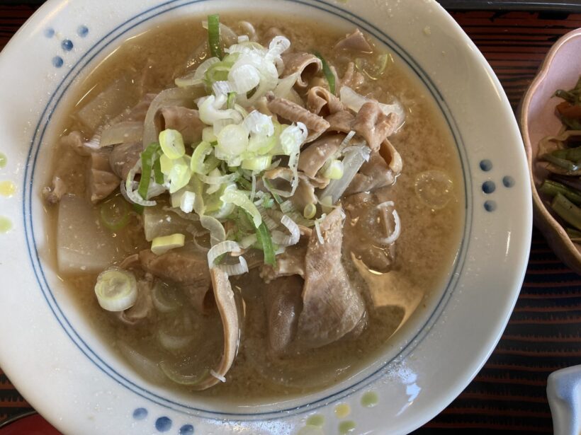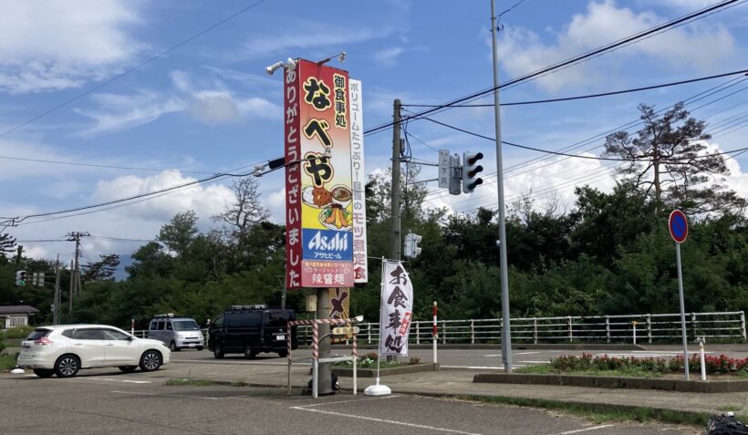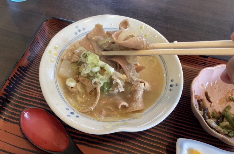 この日は取材で上越市柿崎方面へ。「なべや」さんはお昼時で混み混み。9月だけど暑くて、冷やし中華狙いで入ったお店だったけど、店員さんに聞いたら冷やし中華は在庫がないとのこと。ということで、名物とされる「もつ煮定食」にすることに。