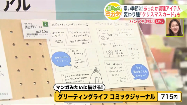 中でも話題になっているのが、「グリーティングライフ コミックジャーナル」(715円)。漫画のように絵や文字を書き込める、とても面白い商品です。