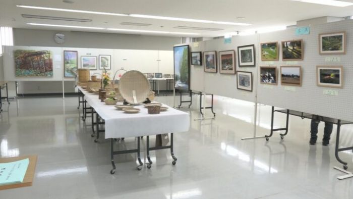 地域の習い事教室の生徒が日頃の活動成果を発表する場として開かれ、会場には、竹細工教室や押し花教室など合わせて24の個人と団体の作品が展示されました。