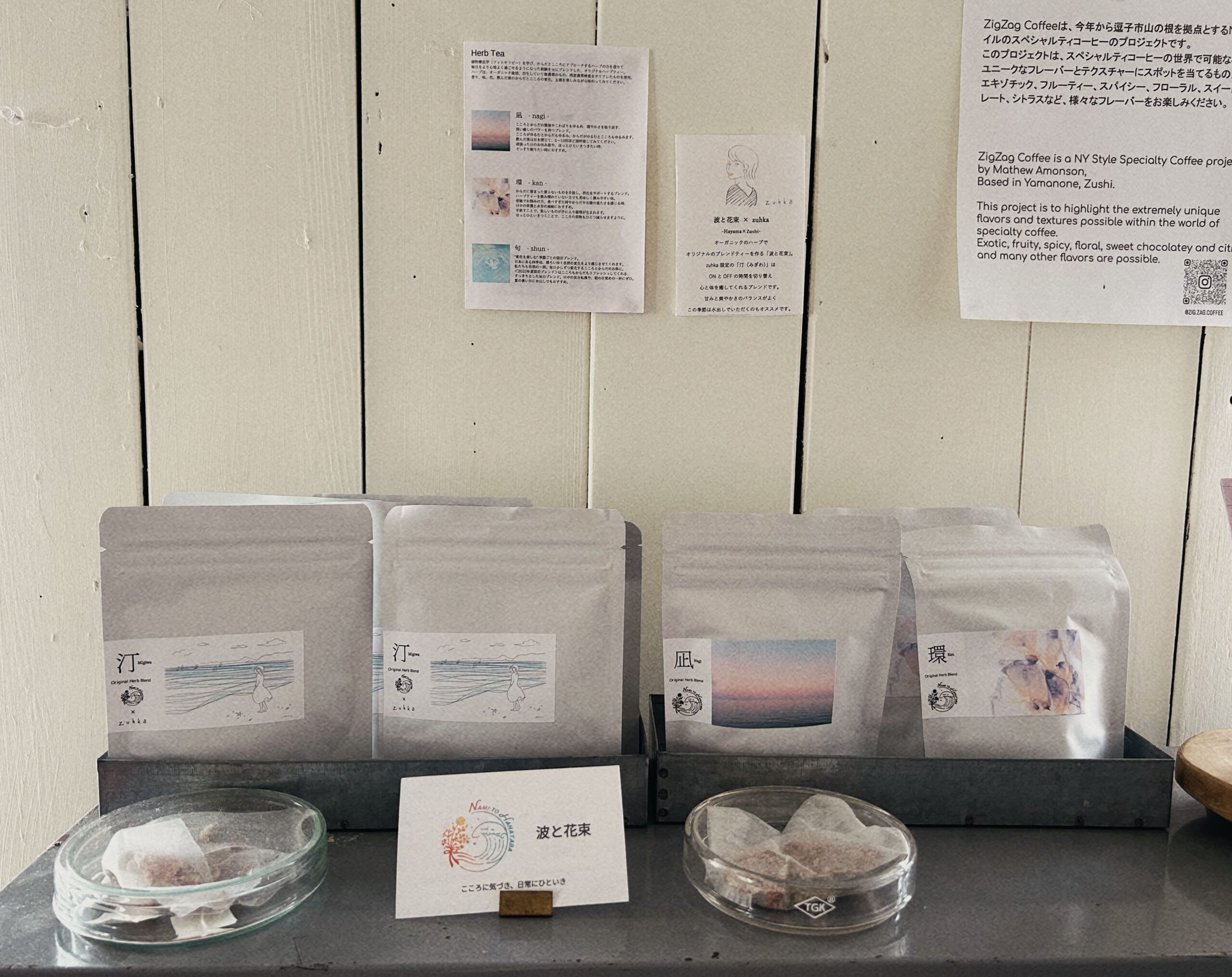 ハーブティーは波と花束さんという葉山にある、ハーブティーをブレンドしてくれる作家さんのもので、汀(みぎわ)というハーブティーを『zuhka』のオリジナルブレンドとして一緒に作っています。