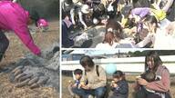 神田リポーターは壺から取り出して15分ほど寝かした「温かい焼き芋」(小300円、中400円、大500円、特大600円)をぱくり。蜜のような甘さとしっとりとした食感に驚いていました。