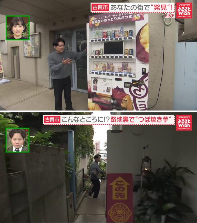 JR古賀駅西口から徒歩5分、国道495号線沿いに、サツマイモ商品を取り扱うちょっと珍しい自動販売機があります。
