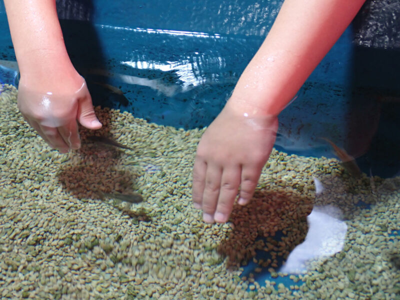 高知県高知市にある桂浜水族館を訪れた際、ドクターフィッシュ体験が100円でできると知り、子どもに体験させてみることにしました。しかし、周りの大人の手には群がるものの、子どもの手にはほとんど寄ってきませんでした。