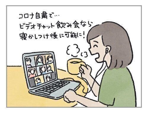 それから、自粛中は、友だちとも会いにくくなりましたが・・・オンライン飲み会が開かれるようになったのは、嬉しい!!子持ちとしては、飲み会に行くのはかなり大変じゃないですか。私の場合、普通の飲み会に参加しようと思うと、高齢の両親に子どものお迎えや世話を頼み、飲み会中に子どものことが気になりながら、寝かしつけの時間までに慌てて帰るという形になるため、かなりハードルが高いのですが。オンライン飲み会なら、子どもが寝た後にゆっくり参加できるし、泣いて起きちゃったら切ればいいし、最&高。お風呂に入った後に、温かいお茶など飲みながら参加できて、終わったら寝るだけというのもポイント高いですね。