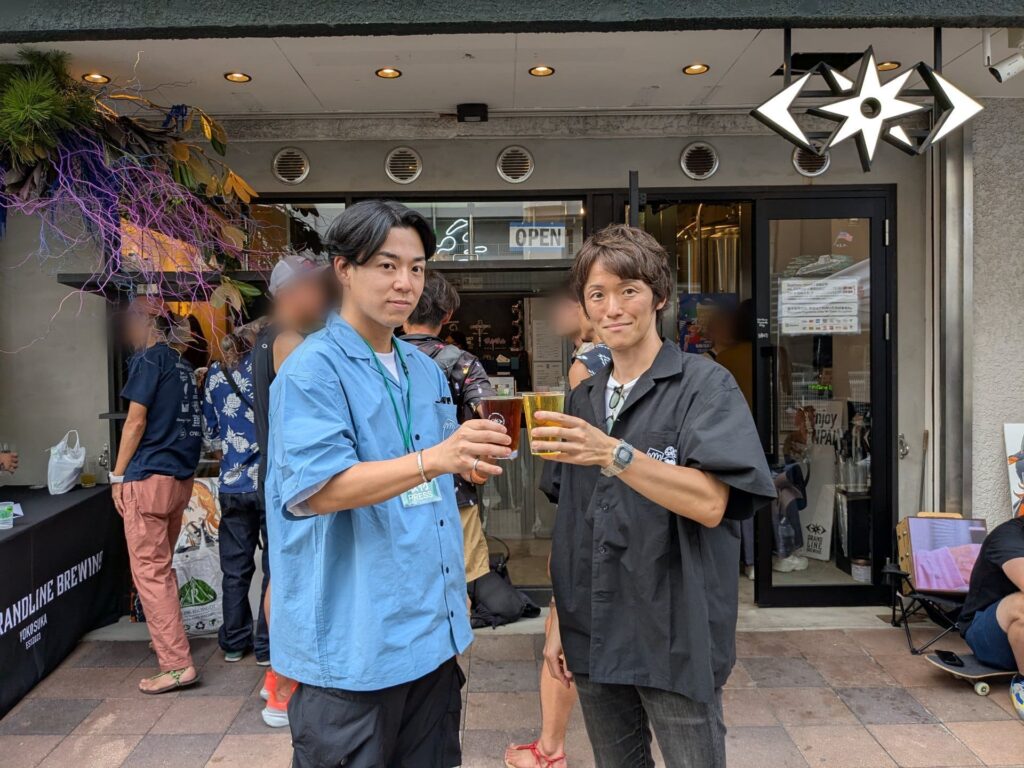 絶好のビール日和となった10月5日。当イベントに招いていただき、オーナーの大西様(右)や広報の長瀬様(左)とお話する機会を得ましたので、乾杯を重ねて直に感じたGRANDLINE BREWINGさんの魅力をお伝えしていきます。
