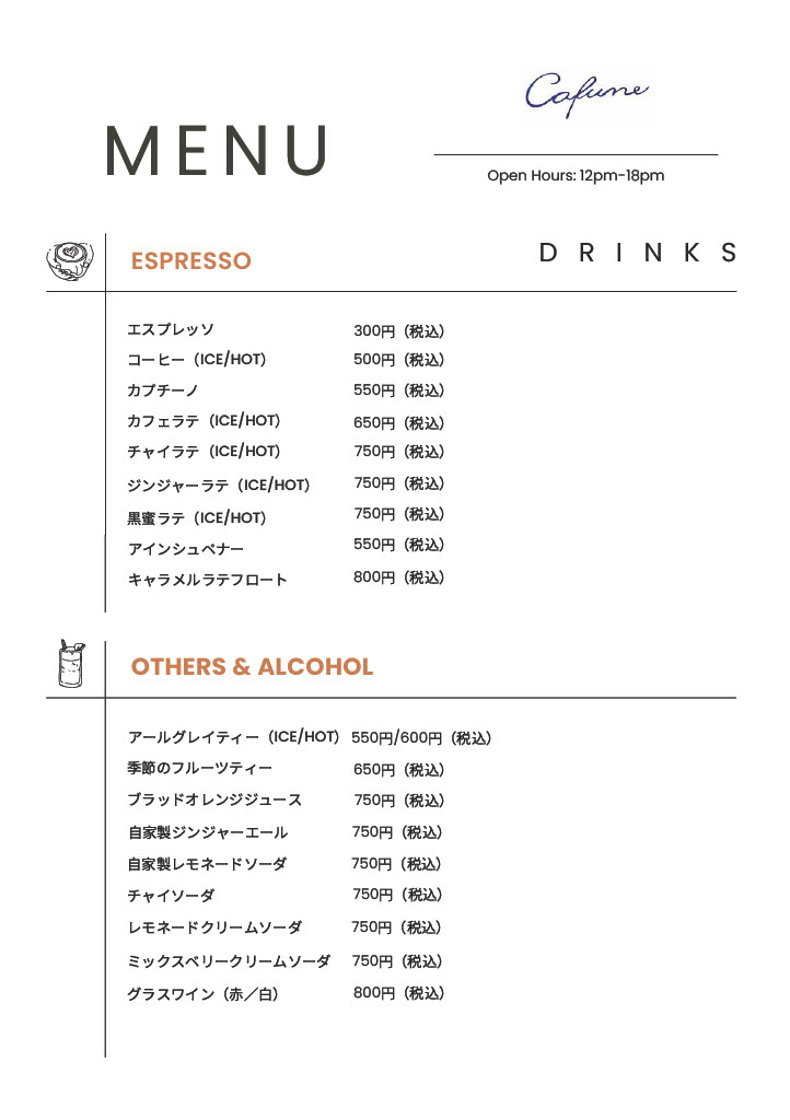 フードもドリンクも充実!Cafune(カフネ)のメニュー