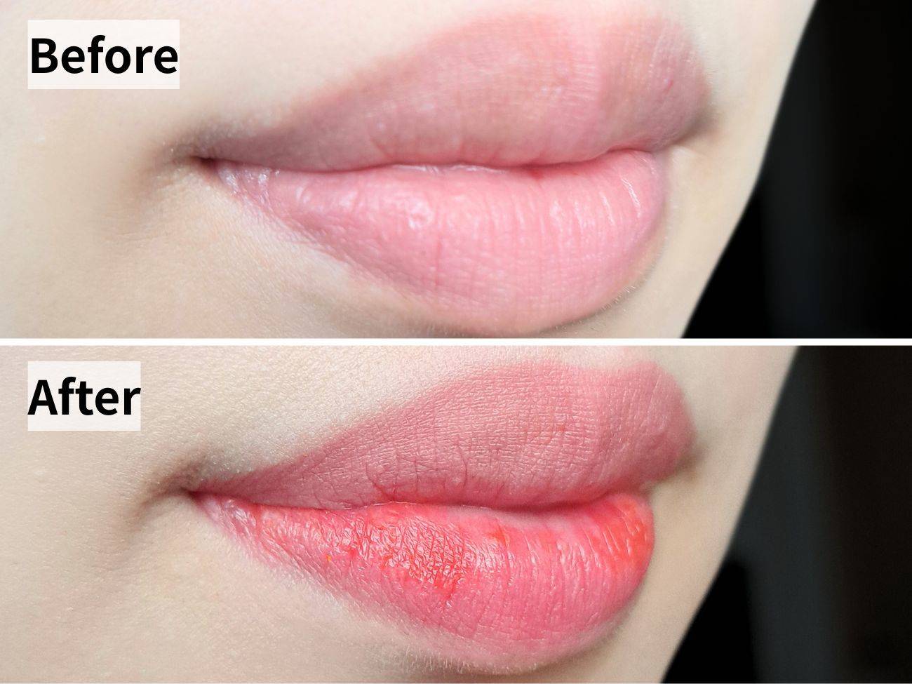 実際に使うと、まるで元から血色のいい唇かのような仕上がり。