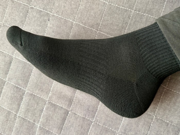 さっそく履いてみると、まあいたって普通。ちゃんとした靴下である。正直、つま先とかかとが補強されている感じはあまりしないが、ここ数日履いてみても違和感はゼロ。なんの問題もない。この価格で普通というのがすごい。