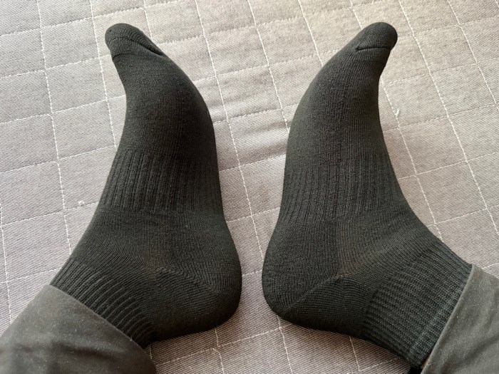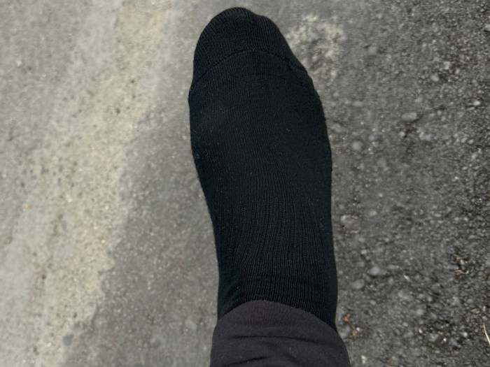 安いからといって薄すぎることもなく1日中歩いても蒸れや破れもなし。履き心地も悪くなく、締め付けもちょうどいい。普通に優秀だ。いい買い物をした……ただし。