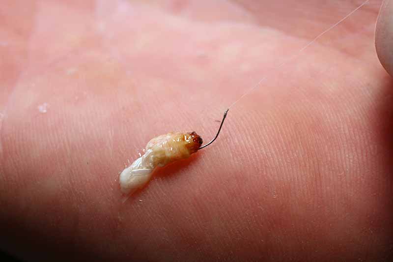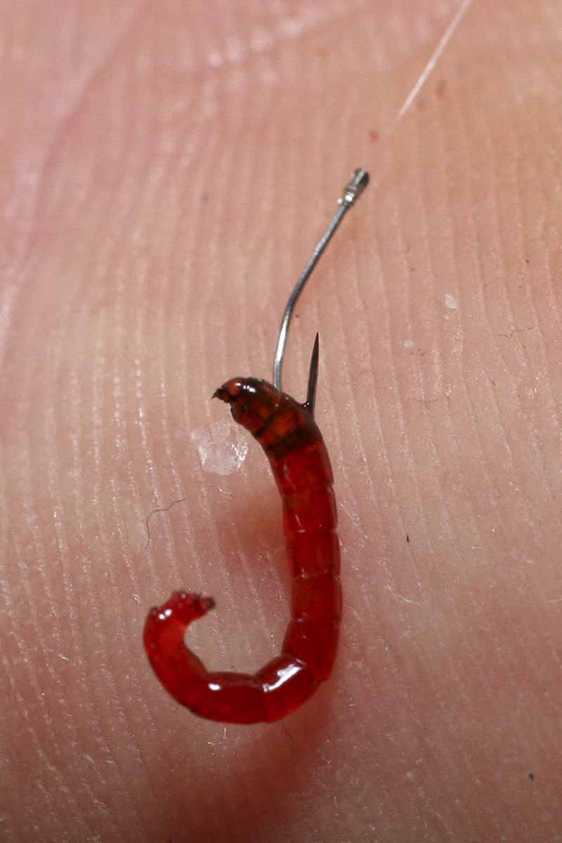 通年釣れるエサだが、特に季節の変わり目で水が濁ったタイミングに反応が良い。体表の光沢と、アカムシ特有のウネウネとした動きが特徴だ。 黒い頭の下にチョン掛けするのが一般的だが、千島さんは頭からハリを通す「通し掛け」を推奨する。理由はエサ持ちが良くなるからだ。