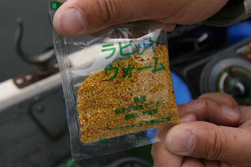 1月〜2月末の厳寒期に特によく釣れる、入手困難な特エサ。サシにウサギの糞を食べさせたもので、強烈な匂いと小粒なサイズ、そして非常に柔らかいのが特徴だ。