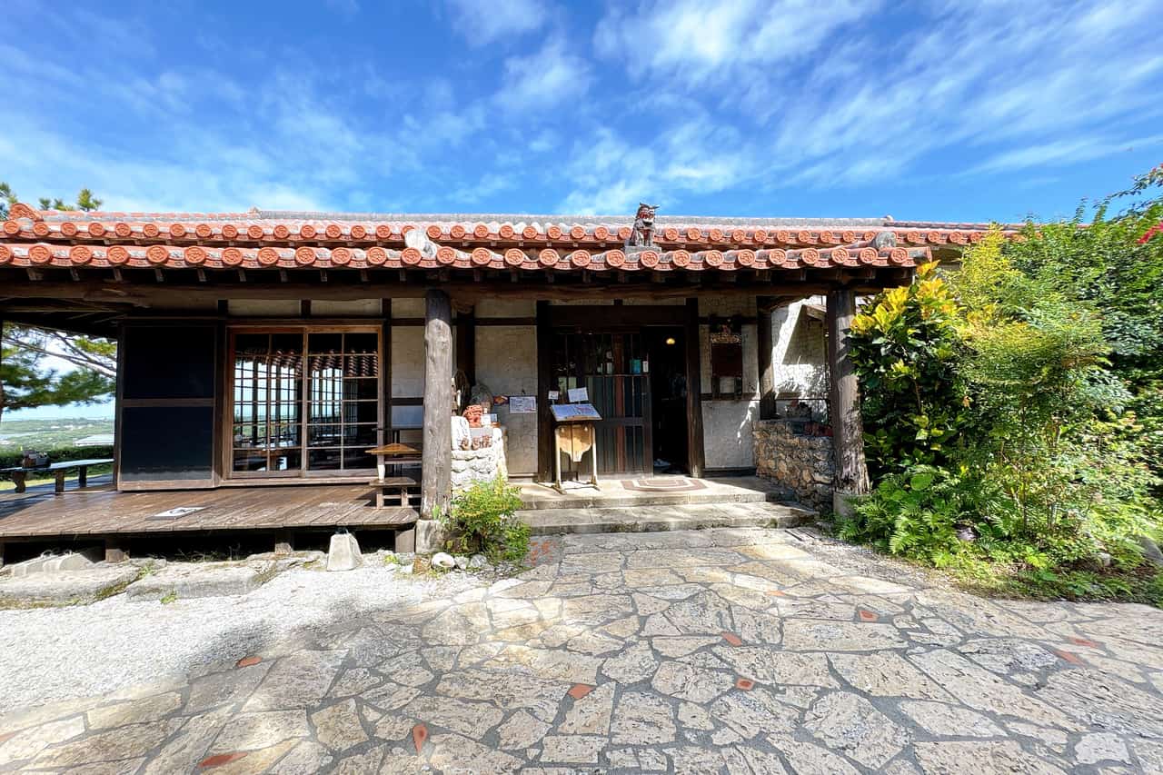 母屋は年季を感じる赤瓦の屋根と太い木柱が印象的です。 本部町伊豆味にある、店主・久場兼作さんのお父さまの実家から、柱を再利用して建てられたそう。
