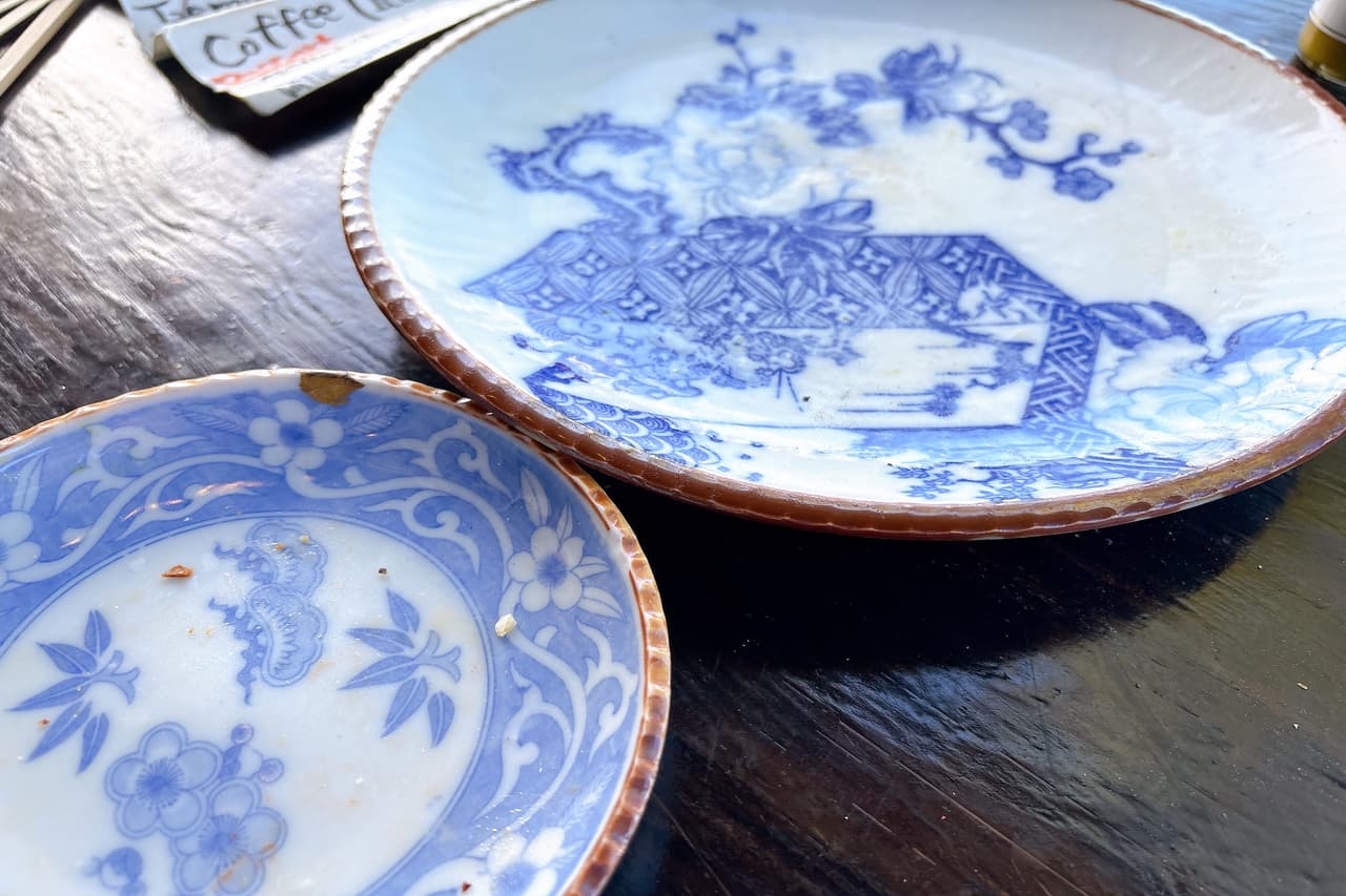 ピザを食べ終えた頃、店主・久場さんが「お皿は、母が趣味で集めた明治・大正時代のものです。使いきれなくなるまで直して使い続けたい。」と教えてくれました。 ピザに隠れていて気づかなかったのですが、ふと視線を落とすと縁にきらりと金継ぎの跡が光っています。 久場さんとスタッフは、時間を見つけて少しずつ器を直しているそうです。欠けを繕いながら、使い続ける。ピザ作りや接客のよさだけでなく、ものを大切に使うやさしさもある、あたたかな空間でした。