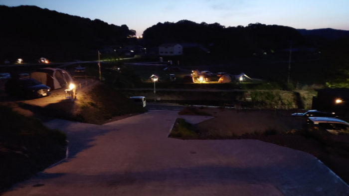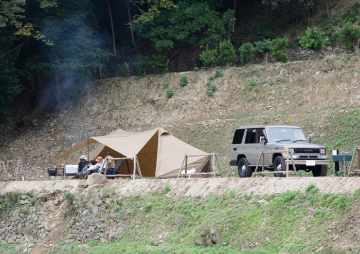 棚田の地形を活用したキャンプエリアは、一部オートキャンプにも対応。鮎屋川沿いのエリアでは手ぶらでBBQ体験もできます。