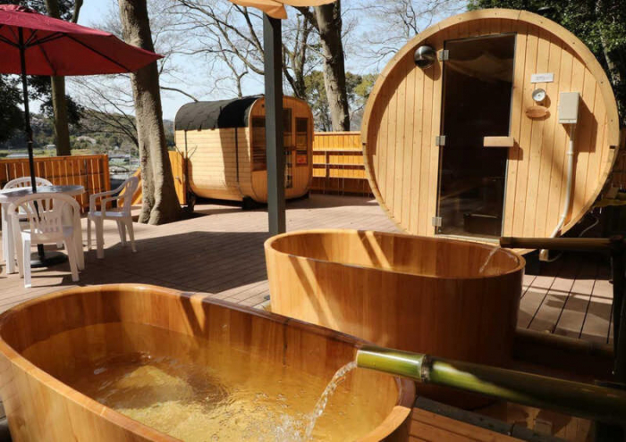 キャンプ場に併設された貸切の天然温泉は、『鮎屋の滝温泉ふれあいの湯』の天然硫黄泉を使用しており、家族風呂として利用可能です(要予約)。
