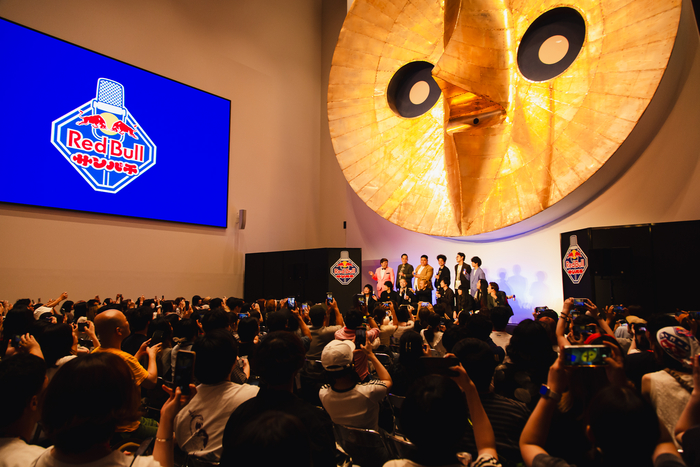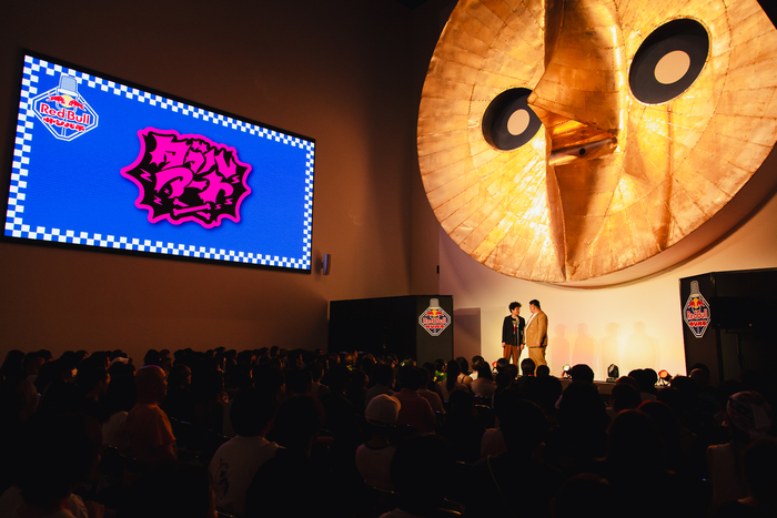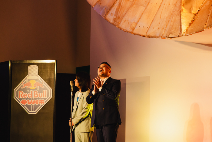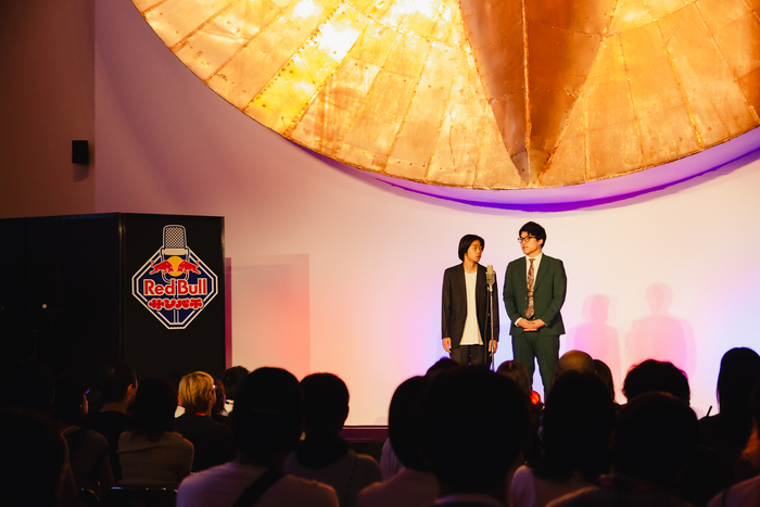 「そういえば来年ってどうなるんですか?」と黒帯のてらうちが客席後方にいる関係者に問いかけると、なんと答えはイエス!「来年もありまーす!」と華山のにこらすが叫ぶと、客席に笑いが起こった。「来年も開催するということで、またお越しいただければと思います。以上、Red Bullサンパチでした。ありがとうございました!」というてらうちの言葉に、会場は割れんばかりの拍手に包まれ、お笑い好きに翼をさずける最高に熱い一夜がフィナーレを迎えた。異常なまでの存在感を放つ黄金の顔の展示をバックに繰り広げられる生の漫才は、普段は体験することのできないダイナミックな臨場感に溢れていた。
