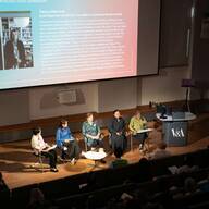 本プログラムでは、「対話型鑑賞ツアー」や「インタビューの練習」などが行われています。 対話型鑑賞とは、進行役(ファシリテーター)と鑑賞者がお互いの対話(コミュニケーション)をもとに鑑賞を深める集団鑑賞の方法です。従来の解説者による一方的な作品の説明とは異なり、参加者は自分の感性で自由に作品を見て、考え、話し、聞き、鑑賞を深めます。