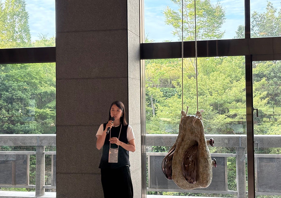 西條茜の作品は、今までに見たこともないような、不思議な形をしています。その形状の奇抜さだけでなく、パフォーマンスで作品を音の出るオブジェとして使う点も、おもしろい試みです。今回は、瀬戸で展示するにあたり、陶とガラスを組み合わせた作品も制作しました。
