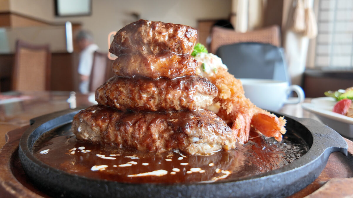 しかもこのハンバーグ、質もすごいんです。企業秘密の2度挽きハンバーグは 口に入れた瞬間にホロホロと解け、肉汁が溢れ出してくるんです。よく見る大食いタレントさんや大食いYouTuberさんが言う「肉は飲み物」という言葉がわかるほどに、肉汁が口の中を満たしてくれます。