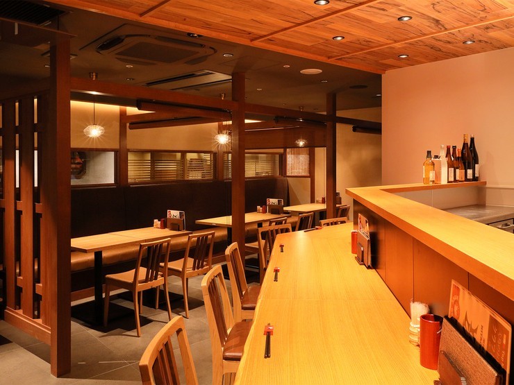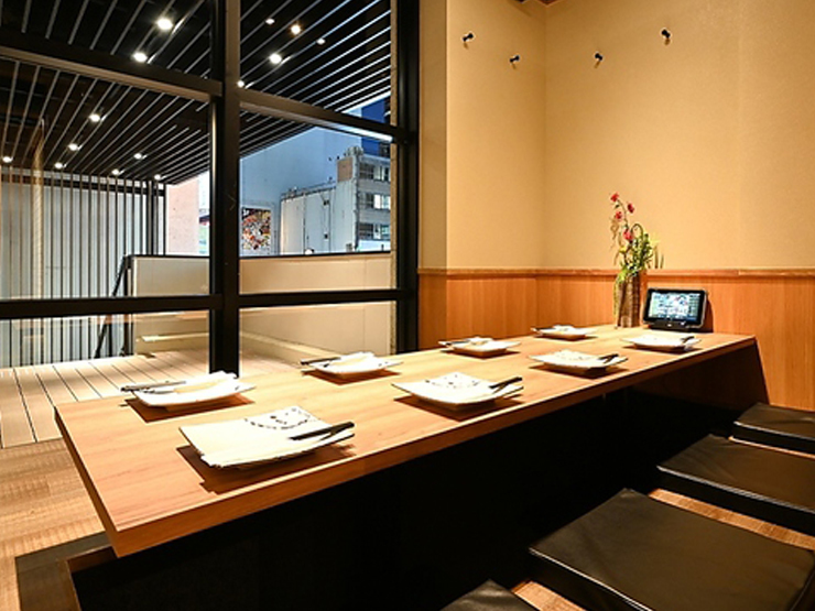 洗練された和空間の店内にはカウンター席があり、一人でも気兼ねなく立ち寄りやすい空間です。そのほか、テーブル席や掘りごたつ式の席はデートや少人数の会食に、個室はグループでの宴会やビジネスでの会食にとシーンに合わせて利用可能。名古屋駅からのアクセスが抜群なので時間を気にせず楽しめ、接待やおもてなしにも最適な一軒です。