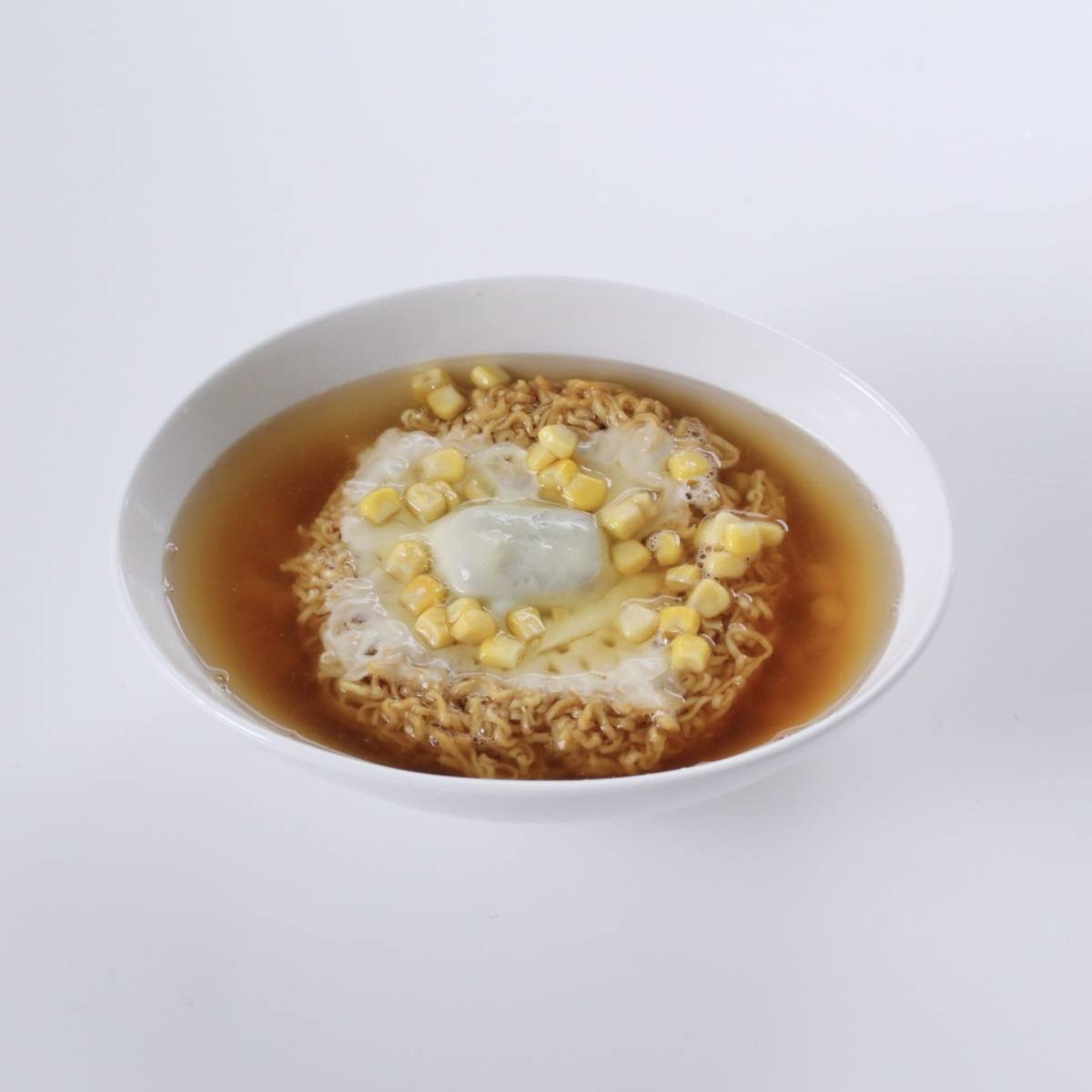 とろけるチーズものせ、上からお湯を注ぎます。