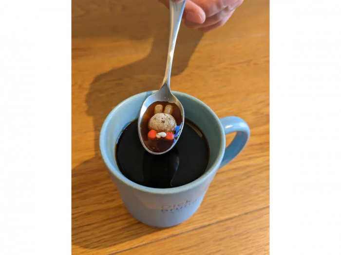2階のカフェはたくさんのミッフィーのぬいぐるみが印象的な空間で、店内のホットコーヒー・紅茶でも提供されるミッフィーシュガーや、POPUPなどで完売が相次ぐ「トートバッグ」などのグッズも購入できます。