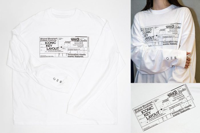 同じく【HHKB × ZOZOTOWN】コラボより、ロングスリープTシャツ(ホワイト)を1名さまへプレゼント!フロント部分には「HHKB Studio」のキーを原寸サイズで配置しており、細部までこだわったデザインになっている。