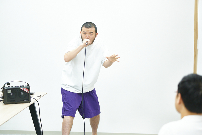 アフロ:俺はMOROHAの活動休止を機に、「またゼロから始めるんだ」と思ったんですけど、ありがたいことにこの連載も続いていて、助けようとしてくれる人もいて。どうしたってゼロになれないことが、半年経ってようやく思い知り始めた。でも、やっぱりもがいてみたいと思うんですよ。だからね「金魚番長のハートは俺にもあるぞ」というか、山里さんに今日は一発かまさなきゃいけないと思いまして。スピーカーを持ってきたんですけど、1曲だけ山里さんに聴いてもらいたいんです。芸人さんのことを歌った曲なんですけど、歌ってもいいですか?