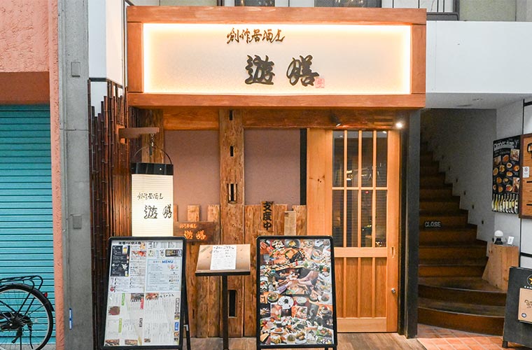 JR・山陽姫路駅からおみぞ筋を歩いて約5分。にぎやかな商店街の一角に、ひっそりと暖簾(のれん)を掲げるのが「創作居酒屋 遊膳(ゆうぜん) おみぞ店」です。