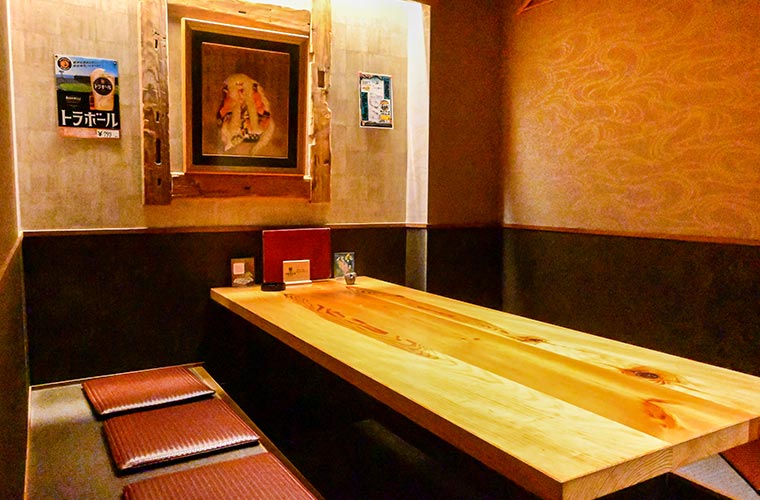 靴を脱いで上がる座敷席は、襖で仕切られた完全プライベートな空間。8人まで利用できるので、少人数での忘年会や新年会にも重宝しそう。