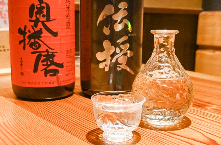 中でも店主のおすすめは、純⽶吟醸芳醇辛口「奥播磨」。芳醇で飲み飽きしないうま味たっぷりの辛口が、日本酒好きを虜にするキレのある味わい。これからの時期は熱燗(かん)もオススメです。迷ったら飲み比べセットも用意されているので、日本酒初心者でも安心です。