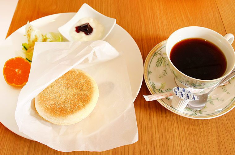 火・金曜日のモーニングは3種類の「イングリッシュマフィン」もしくは4種類の「食パン」から選べます。取材日は、人気No.1の『イングリッシュマフィン』(はちみつバター)をチョイス!表面はこんがり焼かれていてカリッと香ばしく、カリッと中はふんわり。間に塗られたはちみつバターがじんわりと染み込み、口の中で優しい甘さと塩気が溶け合います。シンプルなのに手作りの温かさが伝わってくる一品です。