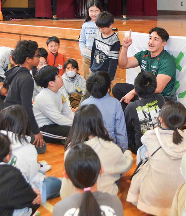 和やかに始まった服部選手の人生談だったが、過酷な練習や怪我で思うようにラグビーができなかった話に、児童たちは真剣に耳を傾けた。