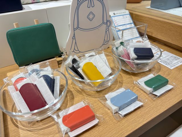「COLOR CHART」では、パスケースやペン、ブックカバー、メガネケース、バッグタグなど、ビジネスにもプライベートにも使えるカラフルなアイテムが充実。