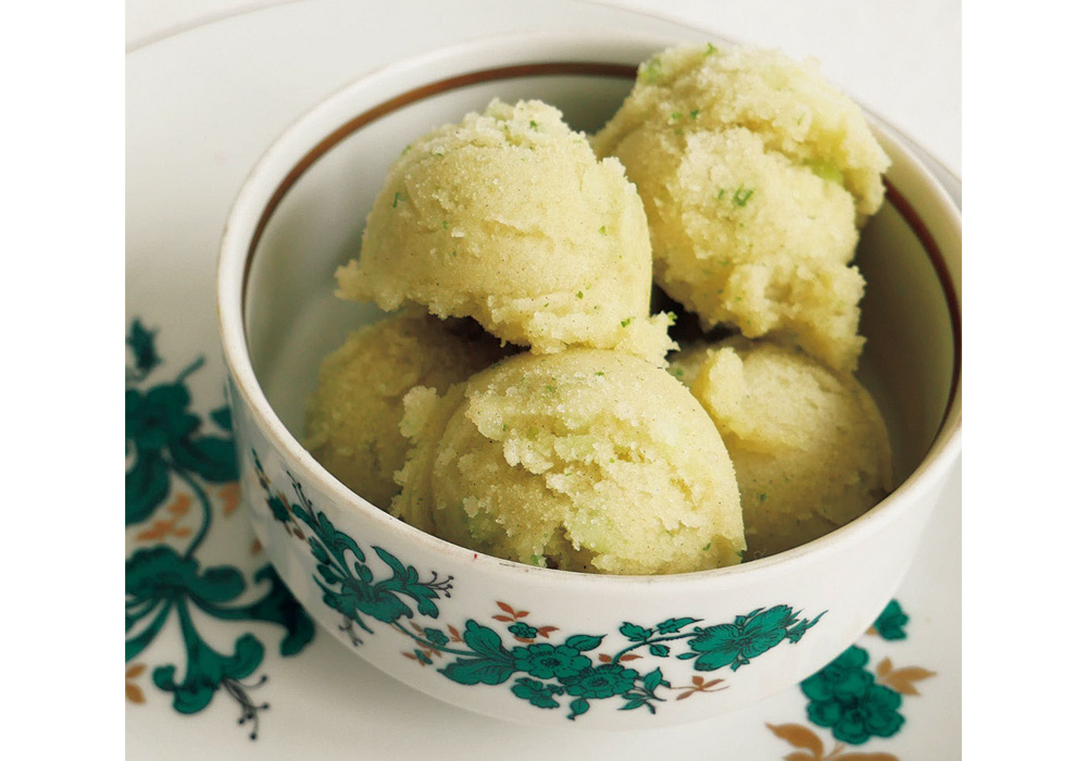メロンとカルダモンは互いを深め合う最高の関係性。スパイス、ハーブ、フルーツが三位一体となり爽やかにまとまっている。凍らせて混ぜるだけで上質なデザートが完成。