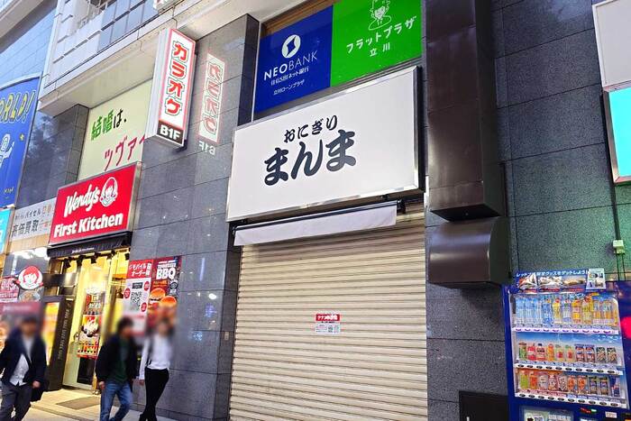 《休業》立川駅北口・フロム中武1Fのテイクアウト専門おにぎり店『おにぎりまんま 立川テイクアウト店』…( https://iine-tachikawa.net/open/148667/ )立川駅北口・フロム中武1Fのテイクアウト専門おにぎり店『おにぎりまんま 立川テイクアウト店』のシャッターが下りています。 いーたち読者さんの情報によると、ここ数…