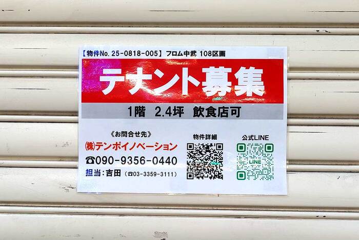 複数のいーたち読者さんからはテナント募集の貼り紙を見た、という情報もいただいていました。(いつもありがとうございます!)