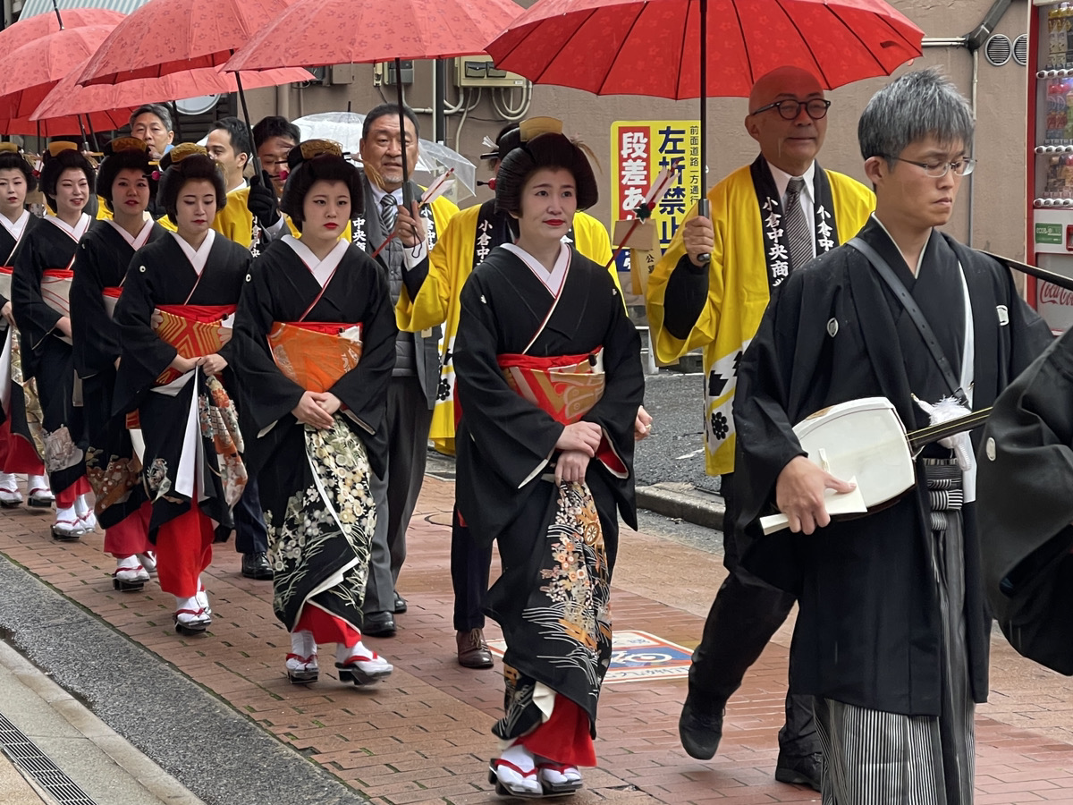 昭和23年から続く行事 芸者姿で小倉都心部を練り歩く