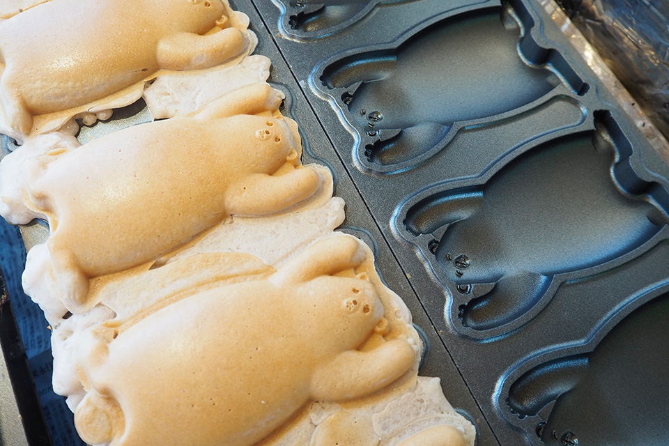 横藤さん:クマの形をしていますが、作り方や味はたい焼きに近いです。でも材料はちょっと違います。一般的にたい焼きの生地には小麦粉を使いますが、「okuma」のくま焼きは米粉。しかも小麦粉を一切混ぜない、100%の米粉です。